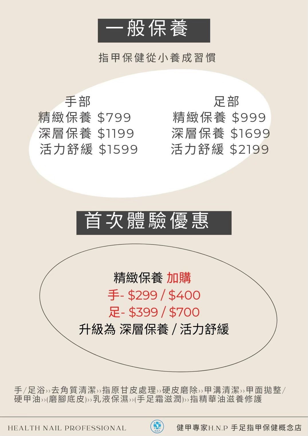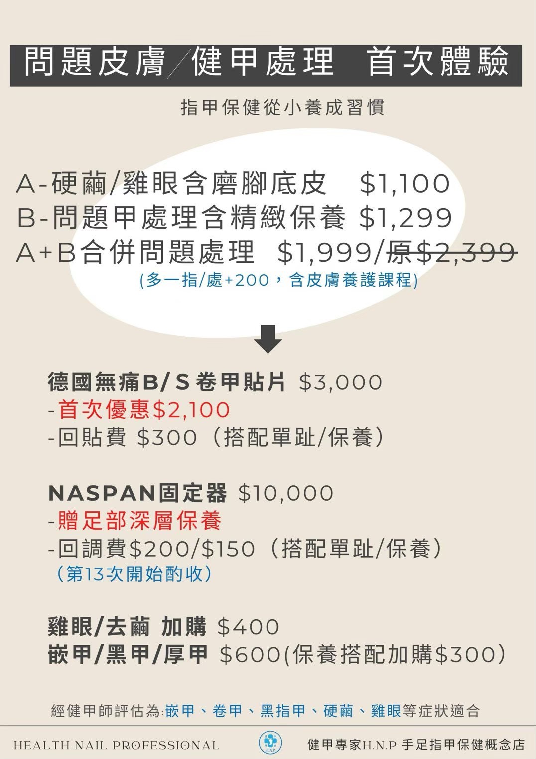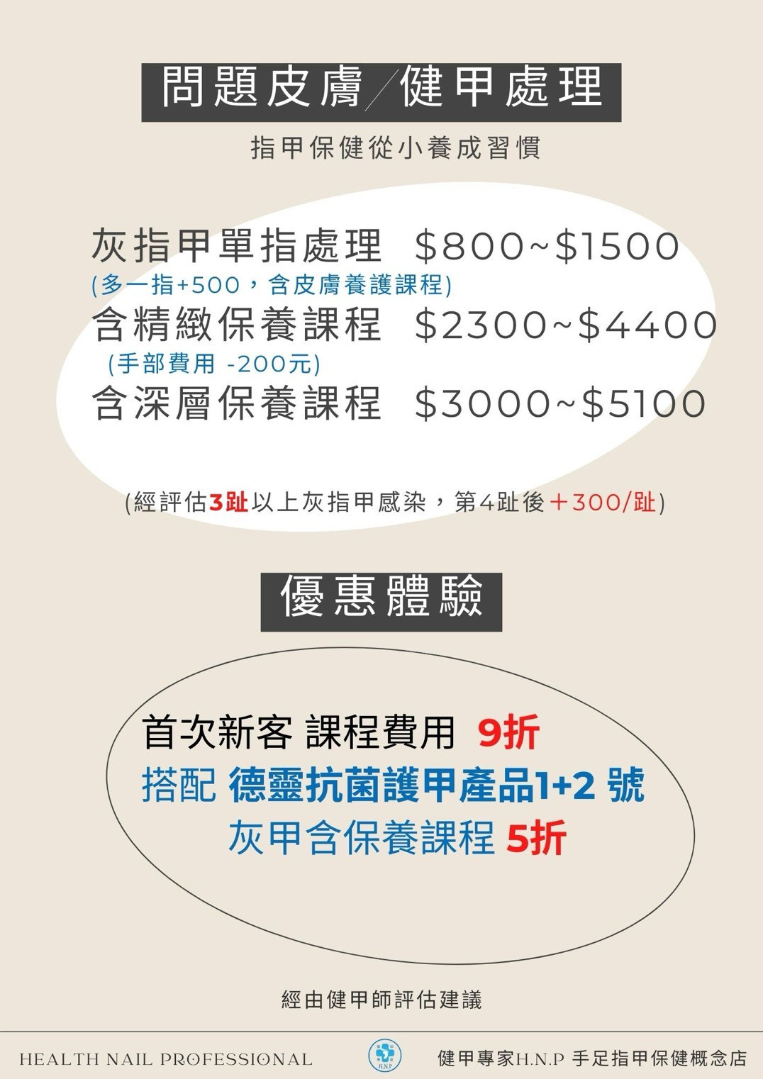 『首次體驗問題皮膚指甲課程』 價目表