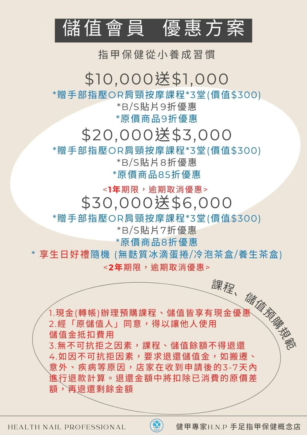 『儲值方案』 價目表